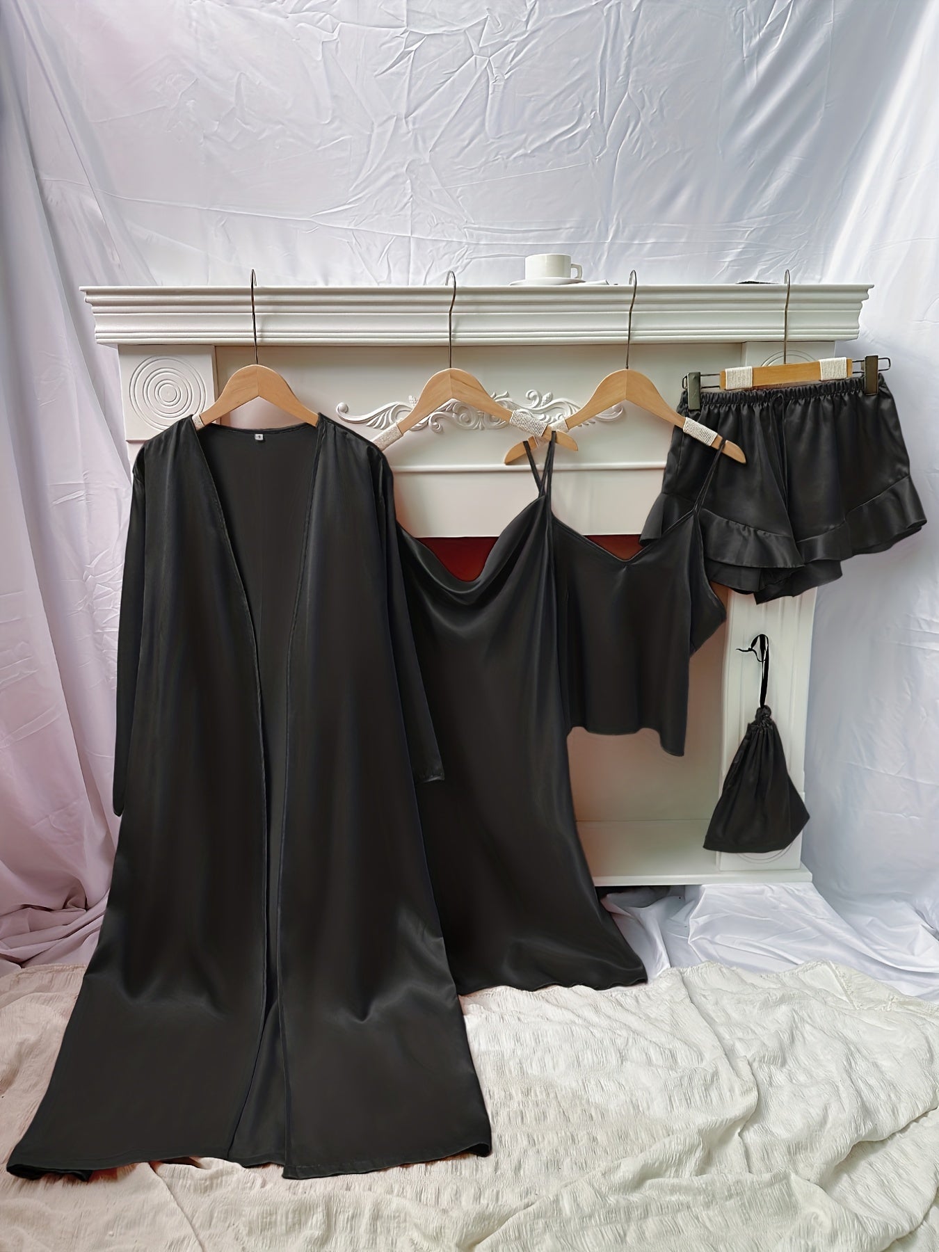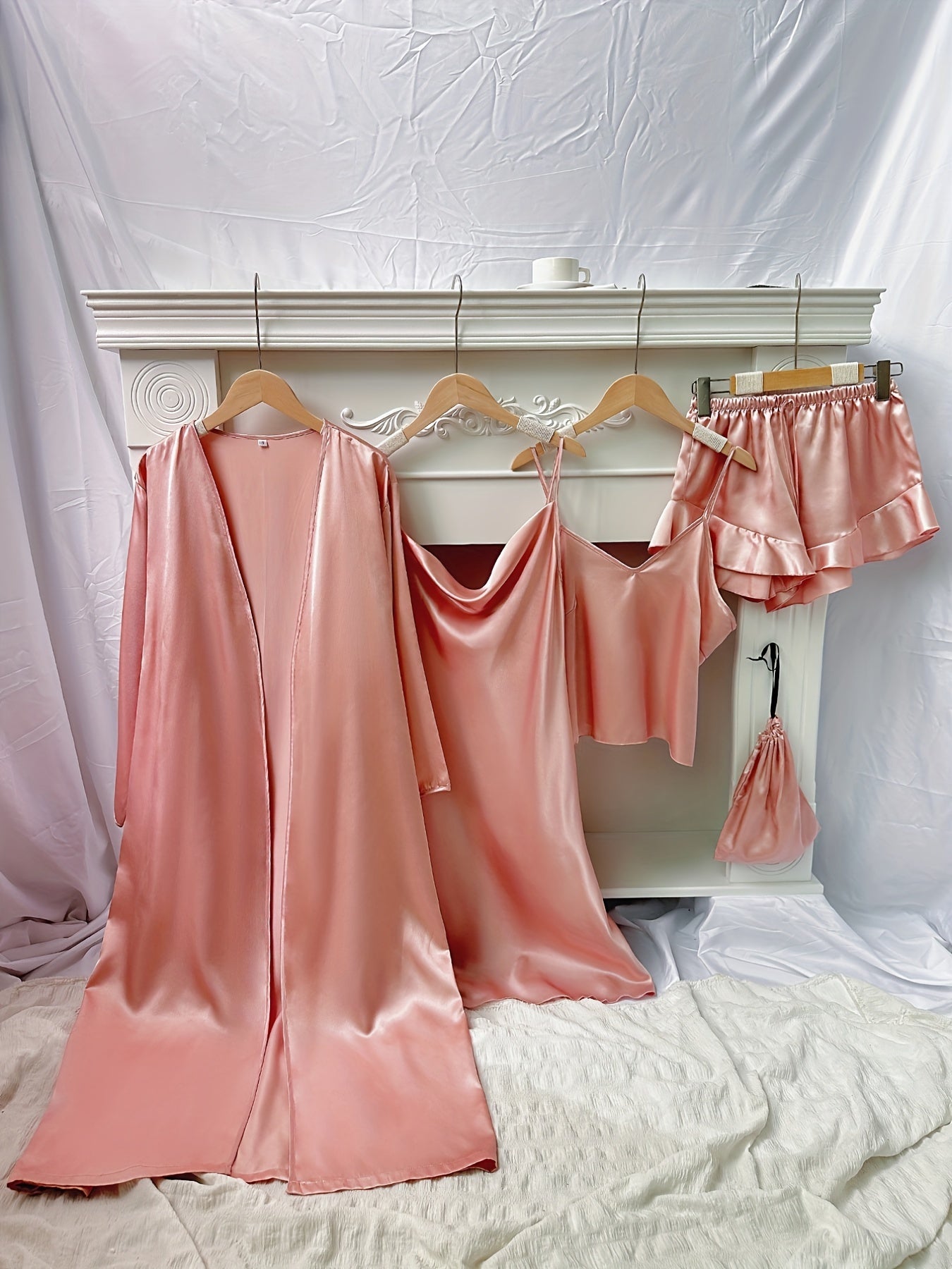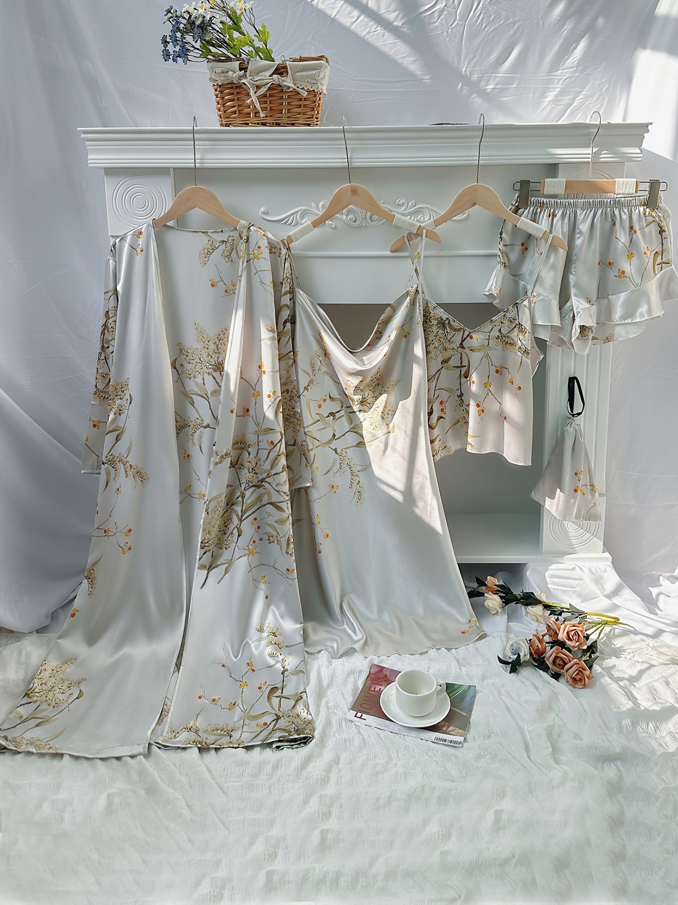 Autumn Winter Women's Printed Pajamas - Thin Sleepwear Set with Suspender Shorts & Skirt, Little Cherry Design