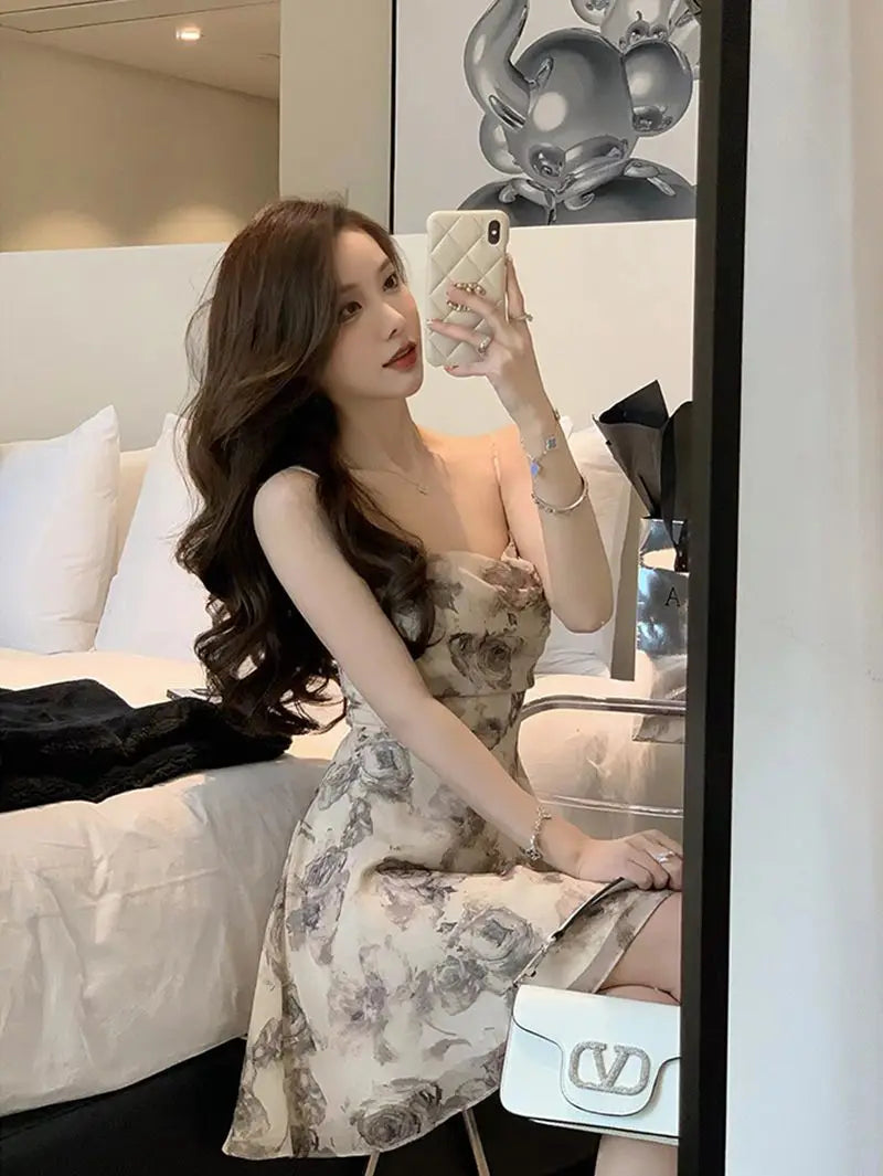 Mini Dresses Women Vintage Floral Temper Hollow Out Summer French Style Aesthetic Party Chic Streetwear Tender Sleeveless Casual