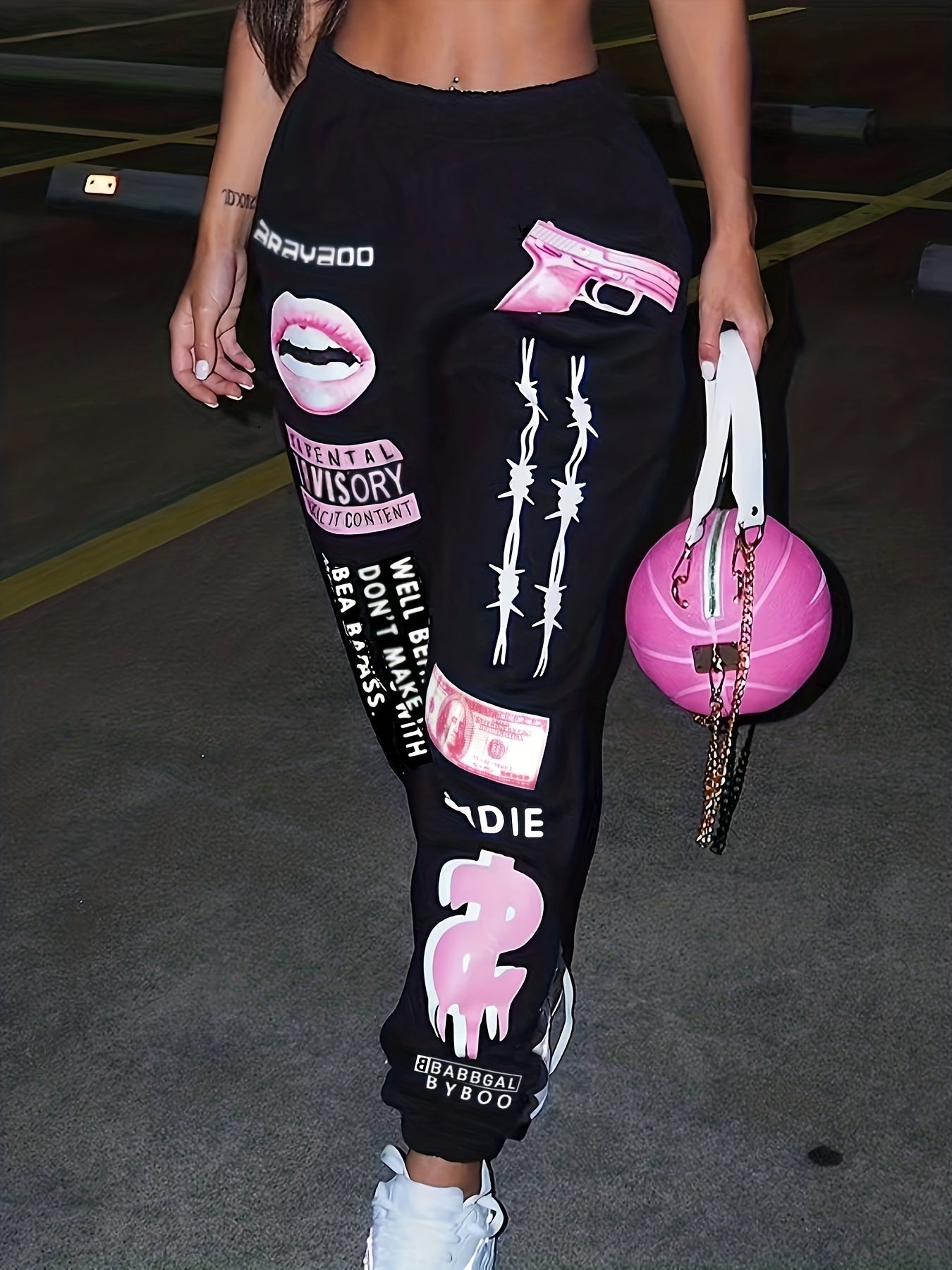 TB5553 Plus Women's Print Fashion Elastic Waist Sports Casual Sweater Oversize Pants Bottom