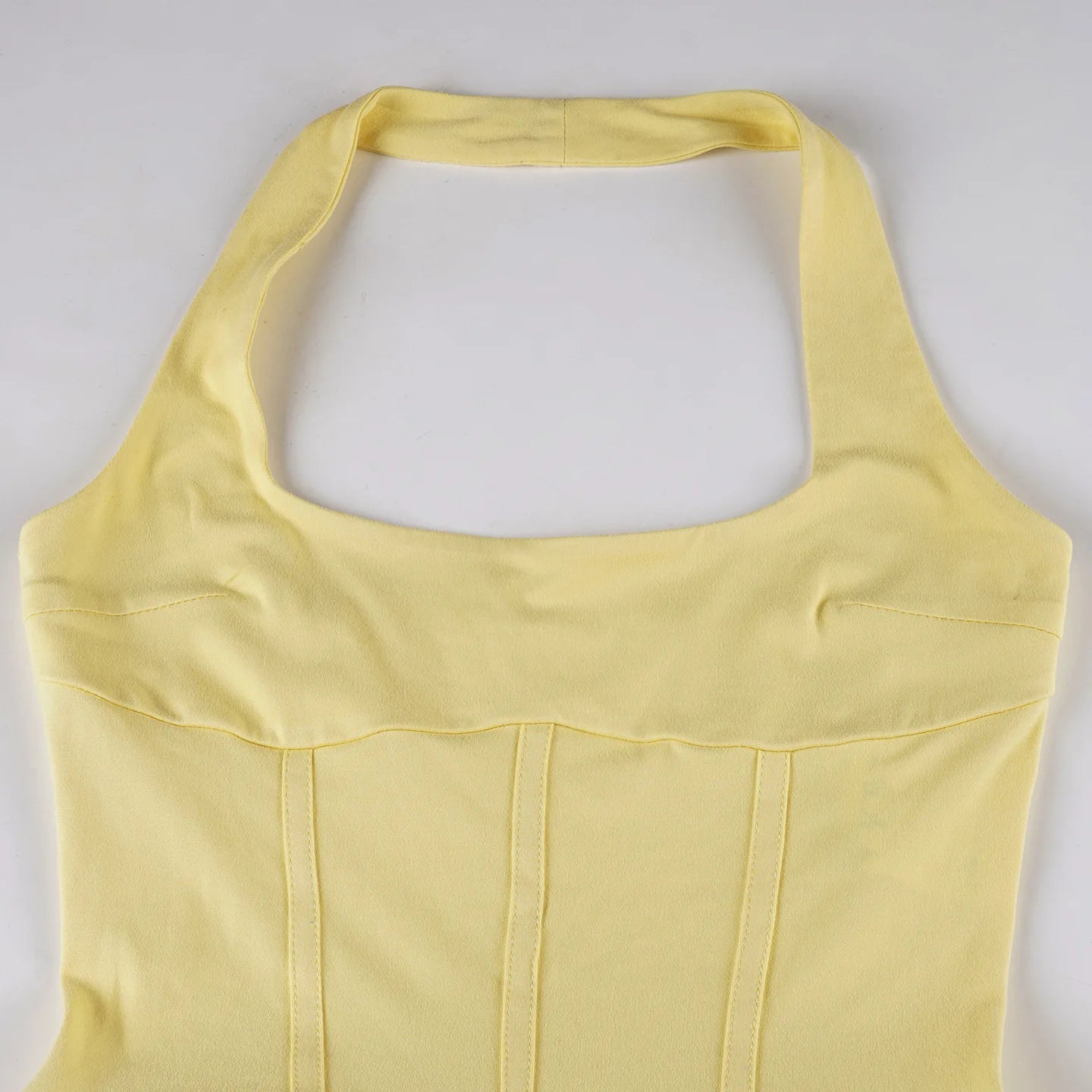 Tornova Vacation Halter Mini Dress For Women Solid High Waist Puffy Dress Ruffled Splice Fashion Sexy Slim Dress 2025 Summer New